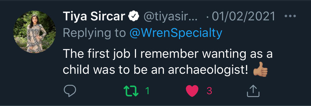 I love learning about and trying to reconstruct how past societies lived and expressed themselves, through a study of their material culture, though I have only studied the Ancient Greek, Roman, and Persian worlds. Archaeology is a cool subject which involves survey & excavation techniques, history, art, architecture, geography, and religion. I get to study a range of primary evidence such as inscriptions, iconography –appearing on various forms of artistic media, (such as on vases, wall paintings, sculptural reliefs, floor mosaics, and graffiti) – ruins of buildings, pottery, and valuable & ordinary finds, numismatics (coinage), skeletal remains, and primary literary sources.Also, here’s a fun fact: Tiya Sircar tweeted about her favourite Spielberg film (Empire of the Sun) and I replied that Indiana Jones was my favourite, since it sparked my interest in Archaeology. SHE REPLIED TO ME SAYING THAT AS A CHILD THE FIRST JOB SHE WANTED WAS TO BE AN ARCHAEOLOGIST!!! The impact this had on me was (and still is) considerable, because my dream job is to become an archaeologist – another reason why Tiya is amazing.OK, I should stop boring you all,